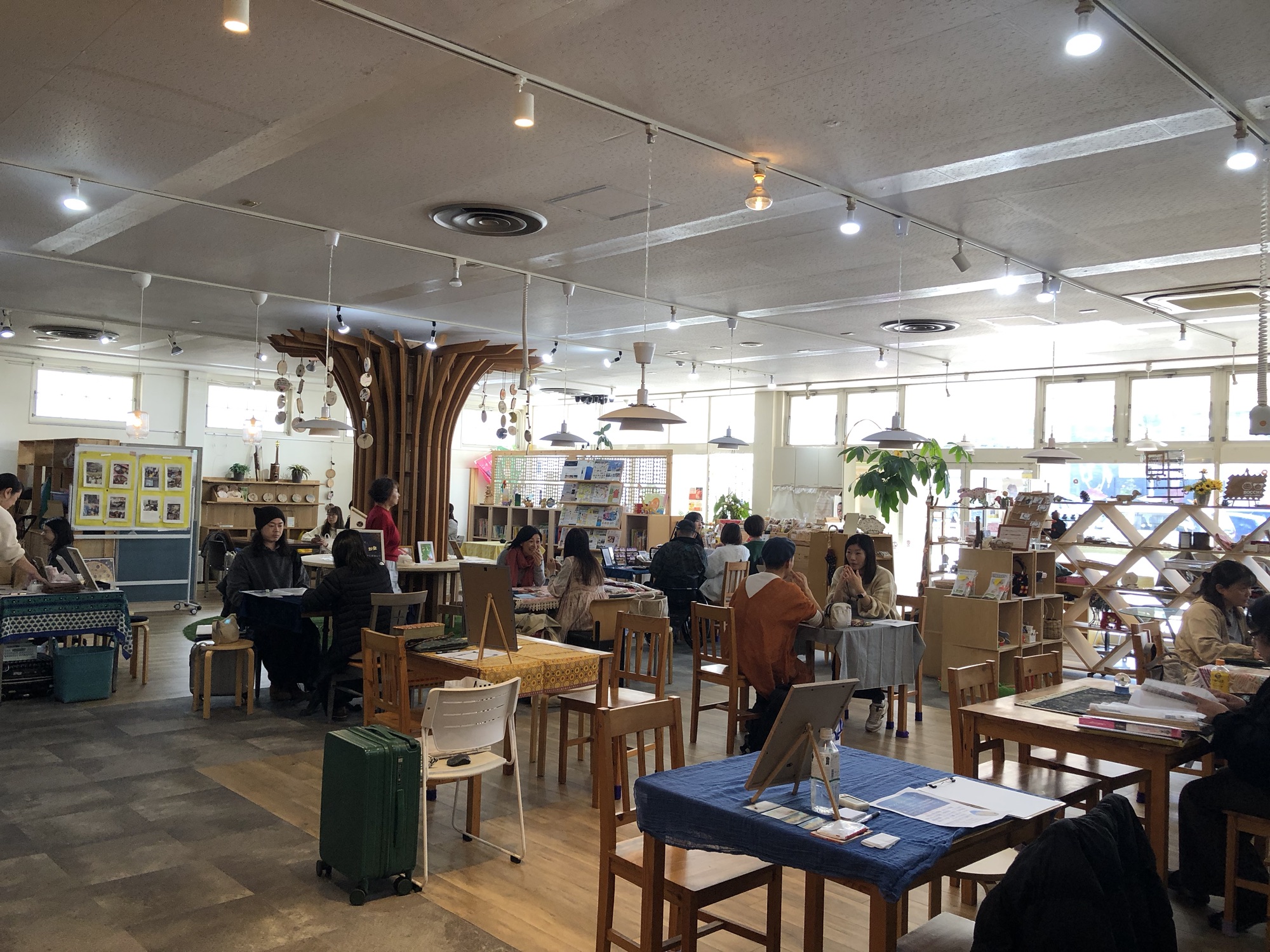 折り紙教室や有志であつまってモノづくりをしたりする手芸サークル、健康マージャンなどがゆるやかに行われています。障害者施設のお菓子や手作りの雑貨なども置いています。小さいスペースですがちょっと立ち寄ってお茶が飲める心地よい空間です。お気軽にお越しください。