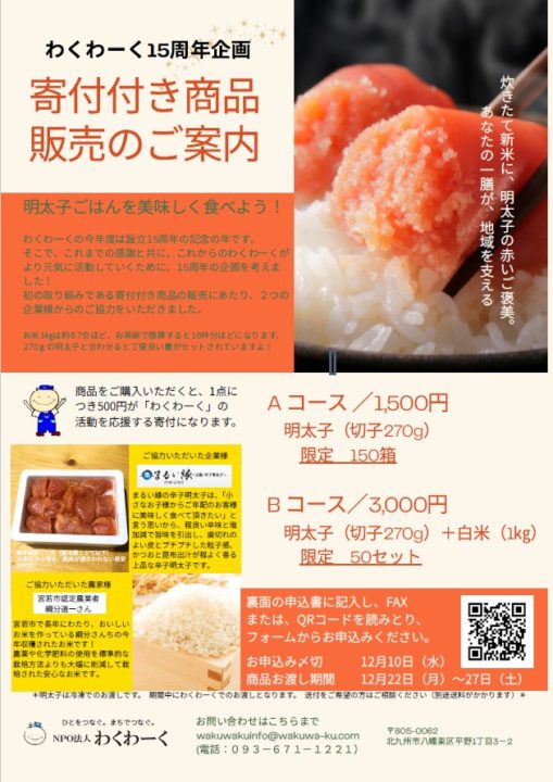 わくわーく15周年の企画として、2つの企業様のご協力と、それを繋いでくださったみなさんから生まれた寄付付き商品のご案内です![]()